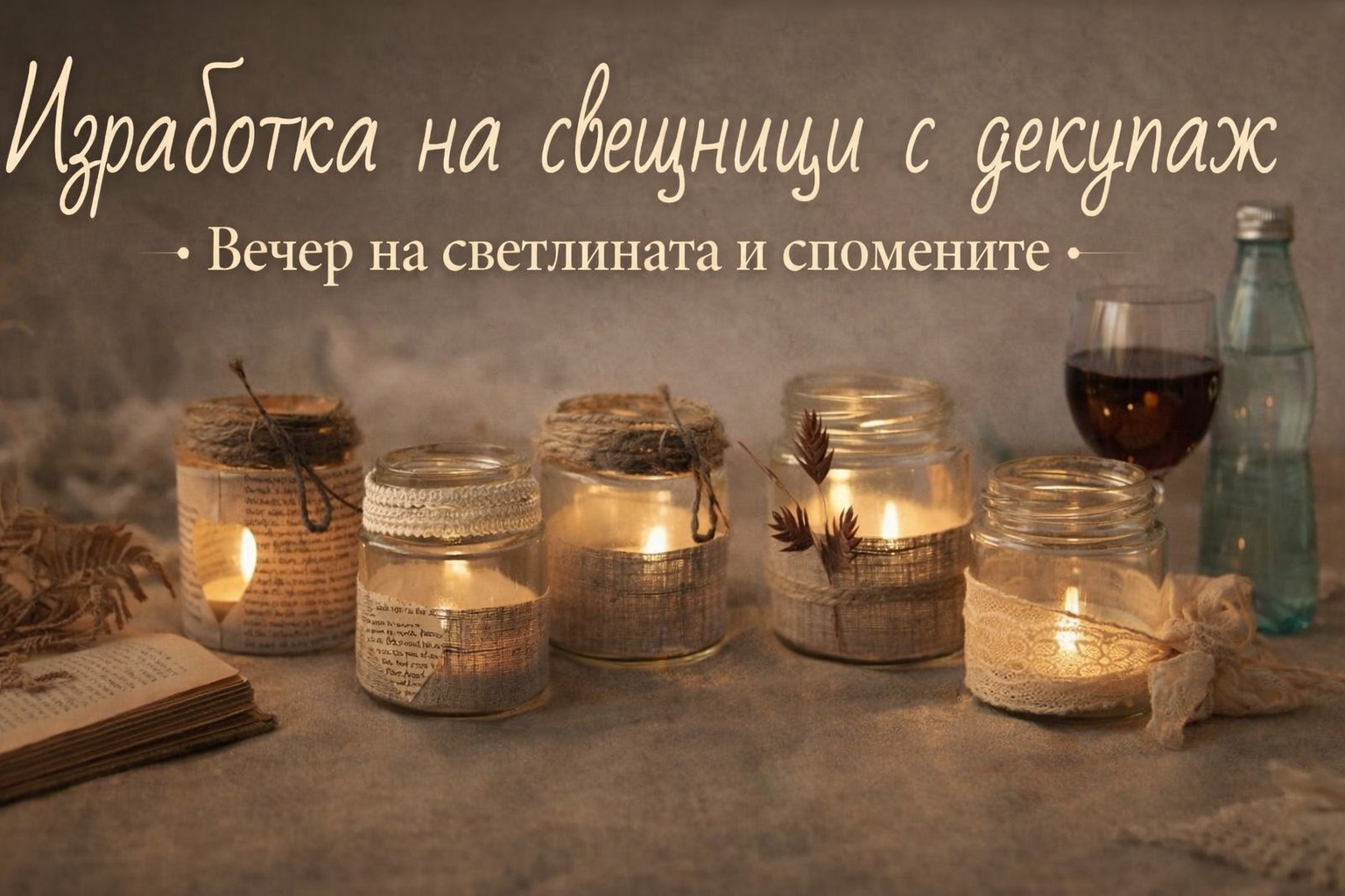 Изработка на свещници с декупаж – Вечер на светлината и спомените (платена работилница)